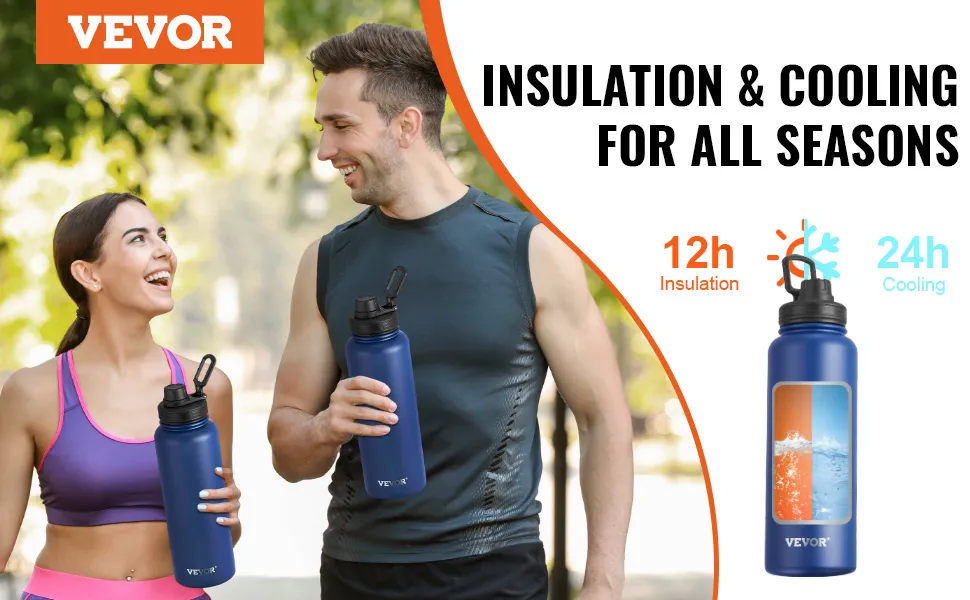 The VEVOR stainless water bottle 40 oz is engineered with superior two-layer vacuum insulation. This feature maintains the ideal temperature for your drink: hot beverages at 12 hours and cold drinks at 24 hours. Whether you love your morning coffee steaming hot or prefer ice-cold water on a hot day, this bottle ensures your drink stays perfect for hours.