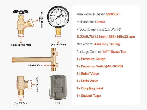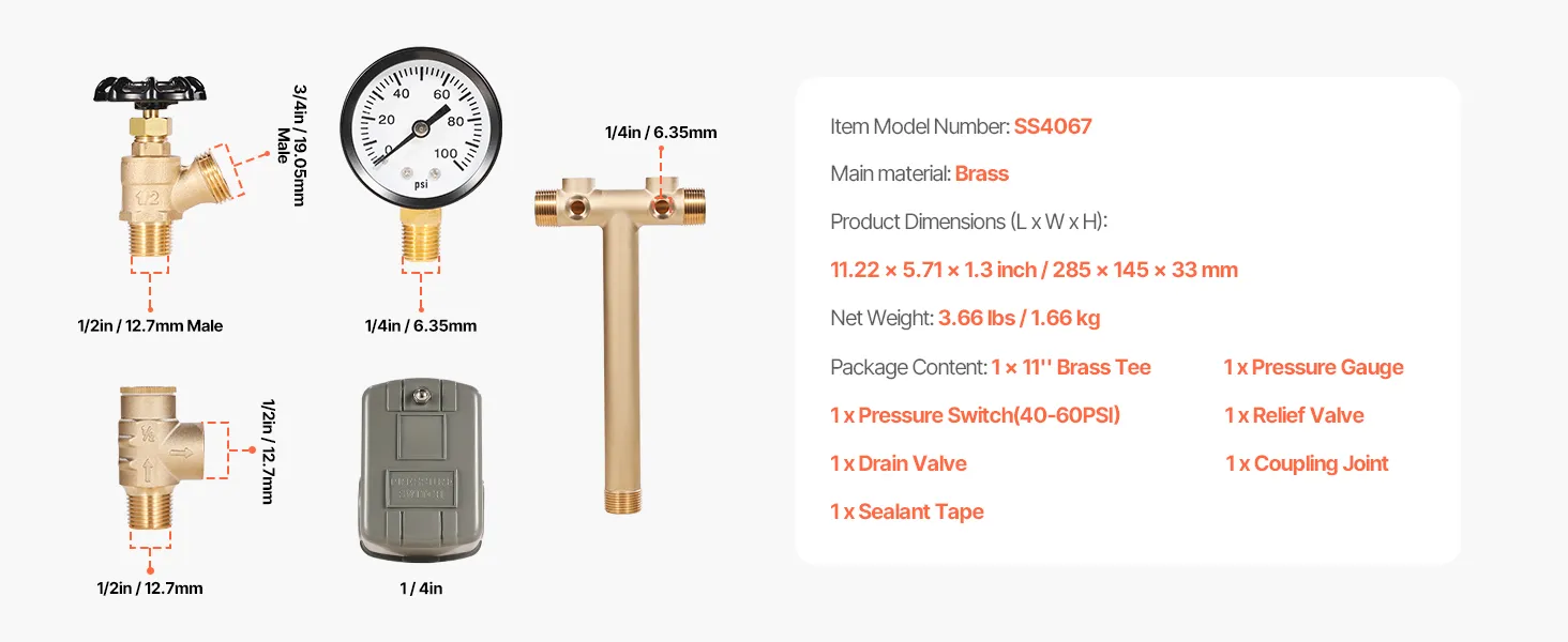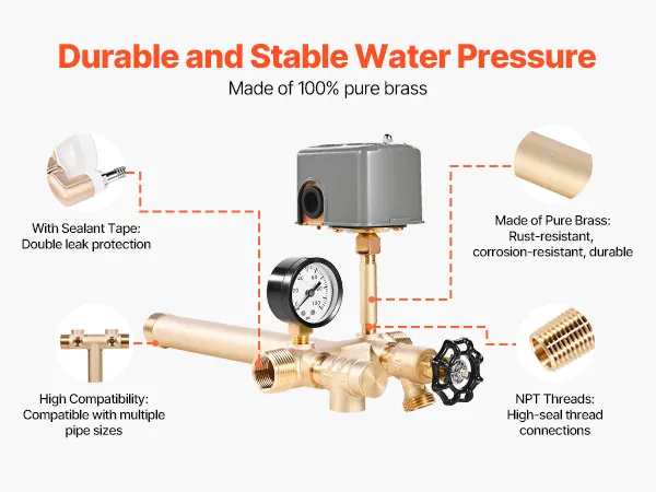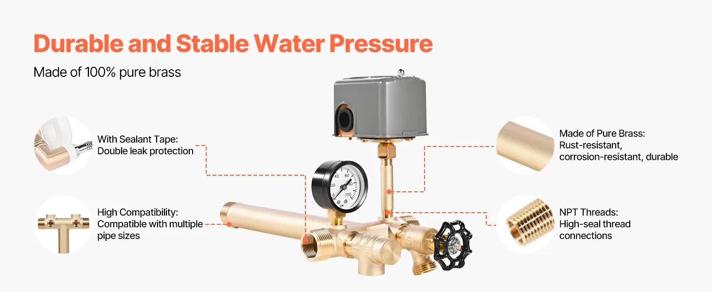 The VEVOR pressure switch kit is a frustration-free installation. The components are all marked efficiently and easily assembled together using brass. Its standard thread fittings are designed to give a secure, watertight connection, providing resistance to leaks with the added protection of the sealing tape. Cleaning and maintenance are easy, just drain, check, and re-install wherenecessary. It is a professional-grade kit that is ideal for new installations as well as upgrades to make your plumbing experience a hassle-free affair.