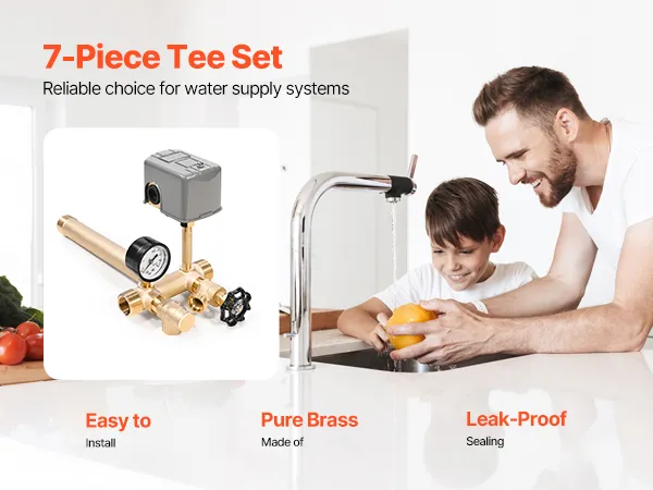 Simplify your water system setup with the VEVOR well tank tee kit, an all-in-one solution for consistent water pressure and secure performance. This 7-piece brass kit ensures strong connections, reliable sealing, and smooth operation for your pump system. Designed for homes, farms, and commercial use, it prevents leaks, rust, and pressure loss with durable, precision-crafted fittings. Whether you’re replacing old components or building a new setup, this kit makes water system maintenance easier, safer, and more efficient every time.