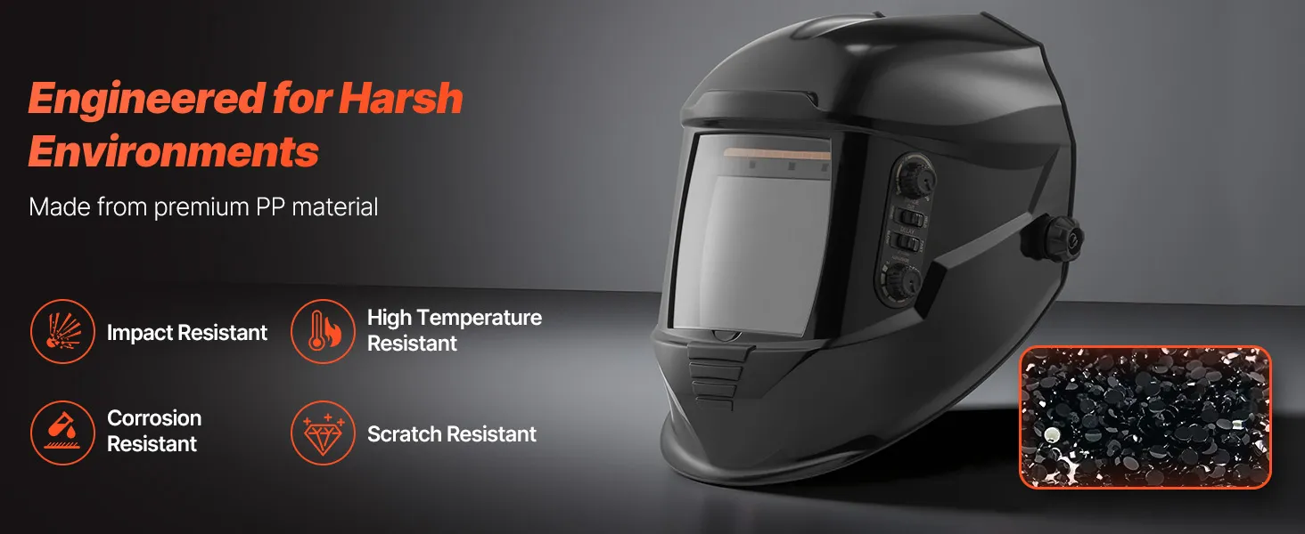 Made of high-quality material, this welding mask delivers exceptional durability with impact and high-temperature resistance. It effectively blocks flying sparks and high-temperature burns to provide reliable protection for your face and eyes.