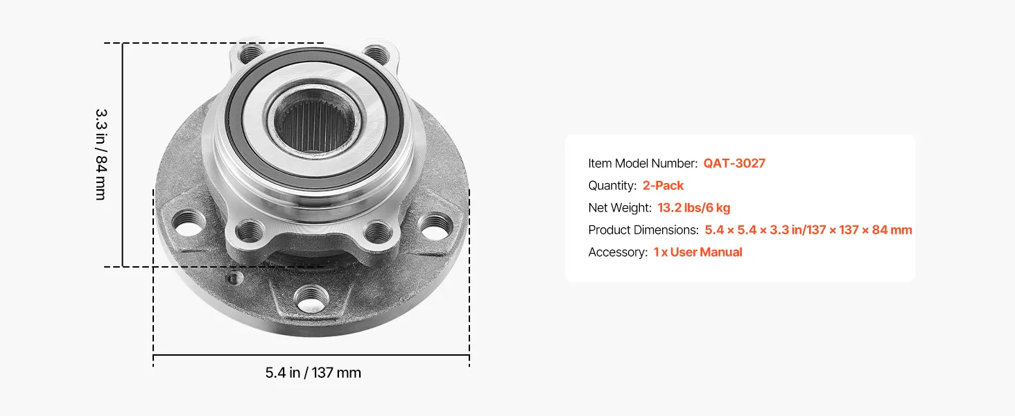 Meets OEM Standards: OE Numbers: 513253, 1T0498621, VKBA3643. Our 2-pack wheel bearing hub assembly is designed for front wheels