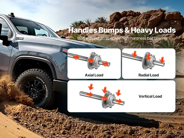 The wheel bearing hub features the industrial-grade, high-hardness ball bearing that provides strong support and stable performance, handling multi-directional loads for safer steering and control.