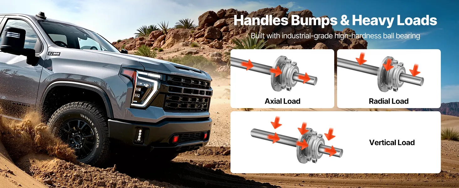 Industrial-Grade Steel Bearing: The wheel bearing is pre-lubricated to minimize friction and wear, and reduce noise. It can withstand multi-directional loads during steering, ensuring reliable handling