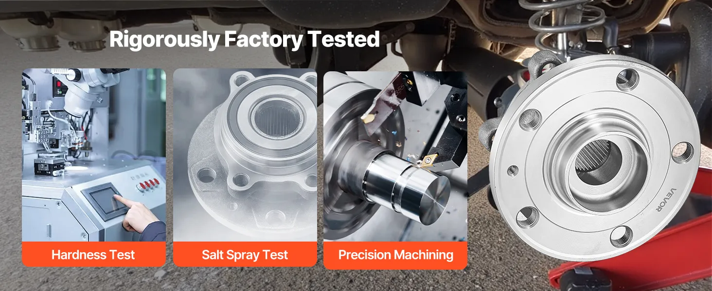 Precisely Factory Tested: The wheel hub undergoes hardness testing, salt spray testing, and precision machining to ensure strength, durability, and long service life