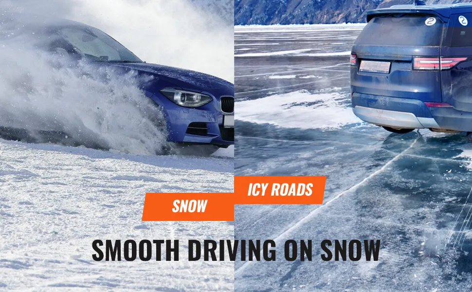 The snow sock's three-dimensional weaving pattern on the traction surface maximizes traction on slippery, snowy roadways. By digging into the snow and improving the tire's traction, this pattern reduces the likelihood of skidding and enhances braking. When stopping or turning fast, especially during winter crises when traction is poor, drivers find it easier to manage and control their vehicles.