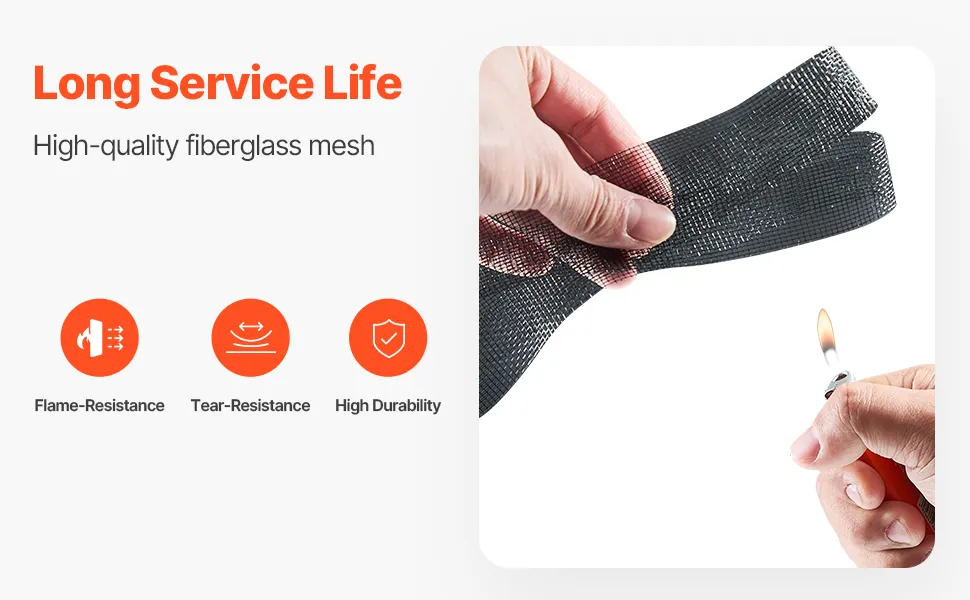 High-Quality Material: Crafted from premium fiberglass window screen material, this screen mesh roll offers exceptional flame retardancy, tear resistance, and durability. It retains its integrity even after cutting, ensuring it won't loosen or crack under the sun or wind exposure.