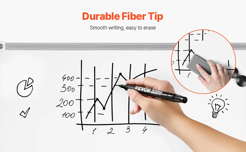 The fiber tip of these black dry erase markers is built to last, delivering consistent, clear lines. The ink wipes away easily with both dry and wet methods, letting you correct or update your work quickly and efficiently.