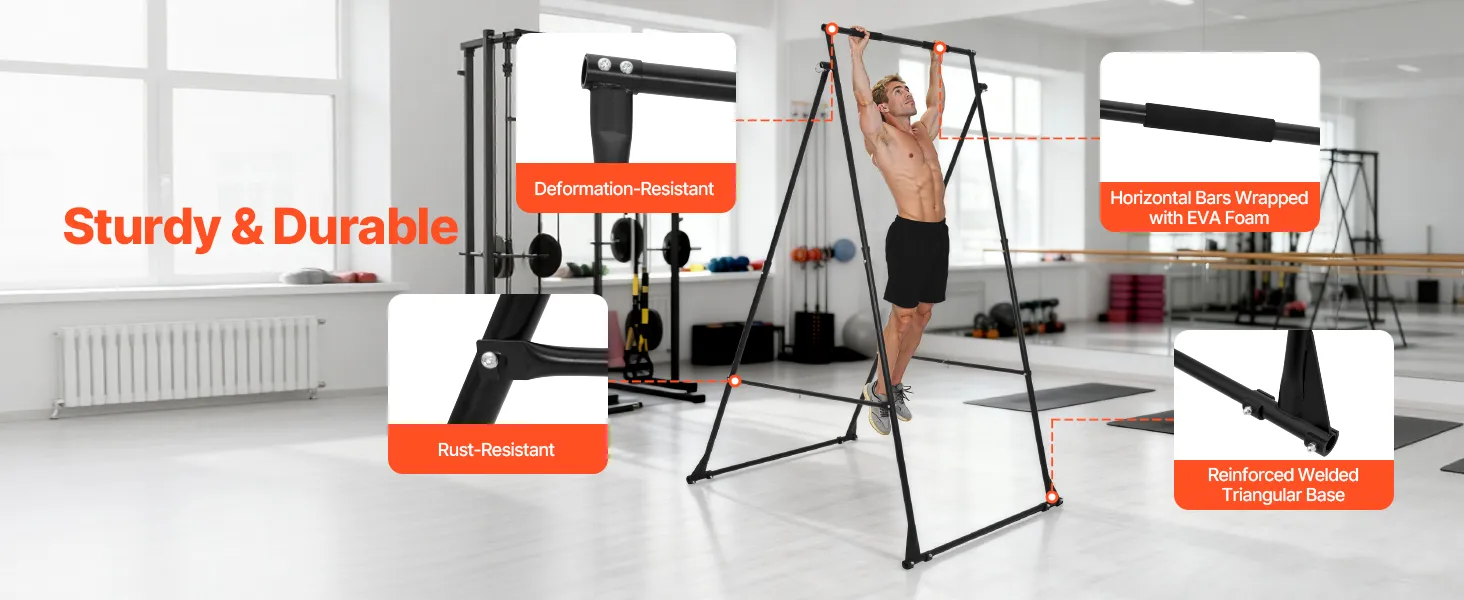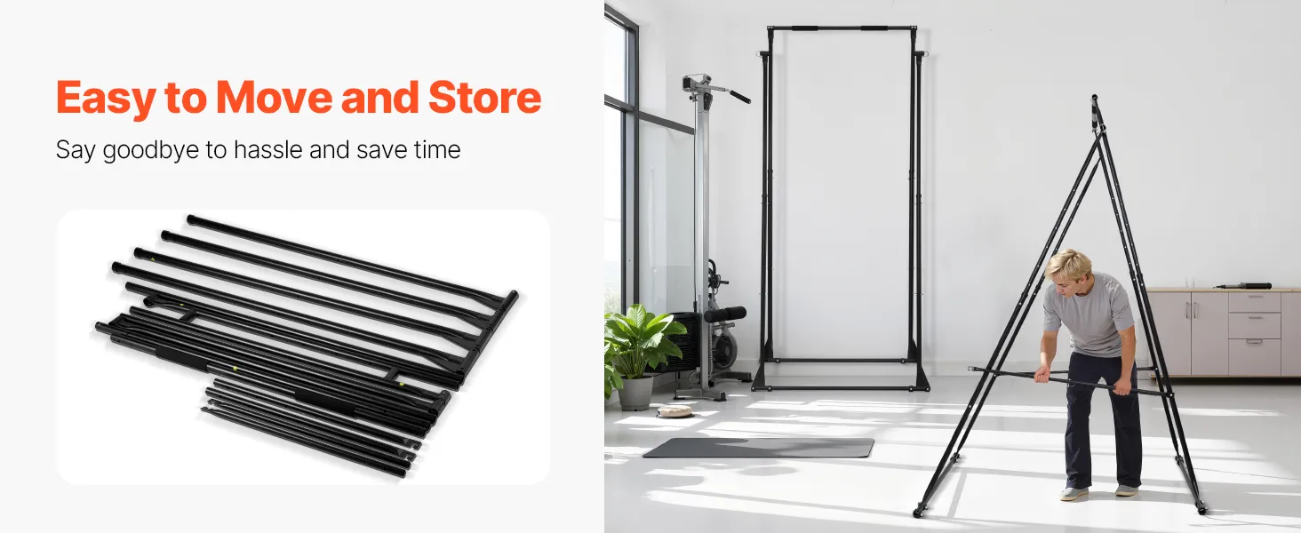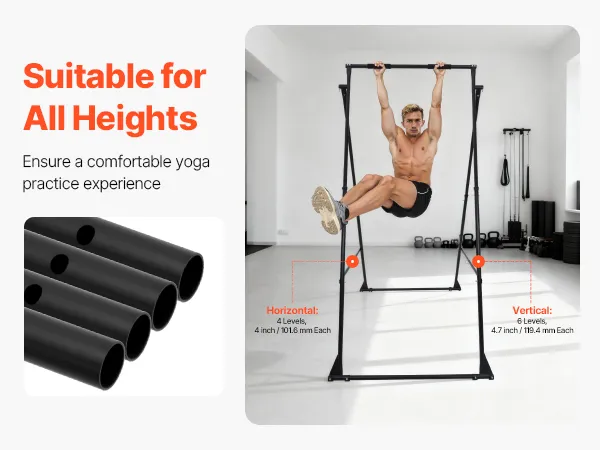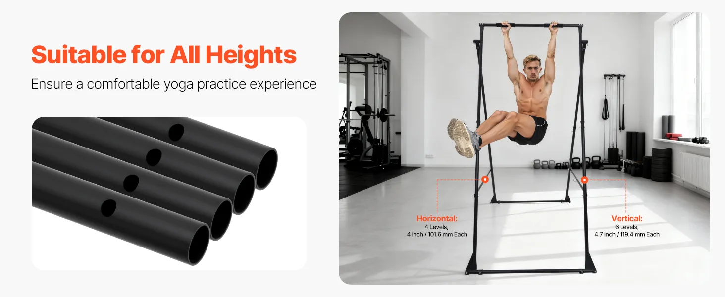 Fast Yoga Assembly: Our pull up stand features a tool-free threaded design for a 5-minute setup. Quickly transition between indoor and outdoor sessions. Its compact structure takes up minimal space, helping you save time and energy while enjoying smooth, ready-to-go yoga and stretching practices anytime