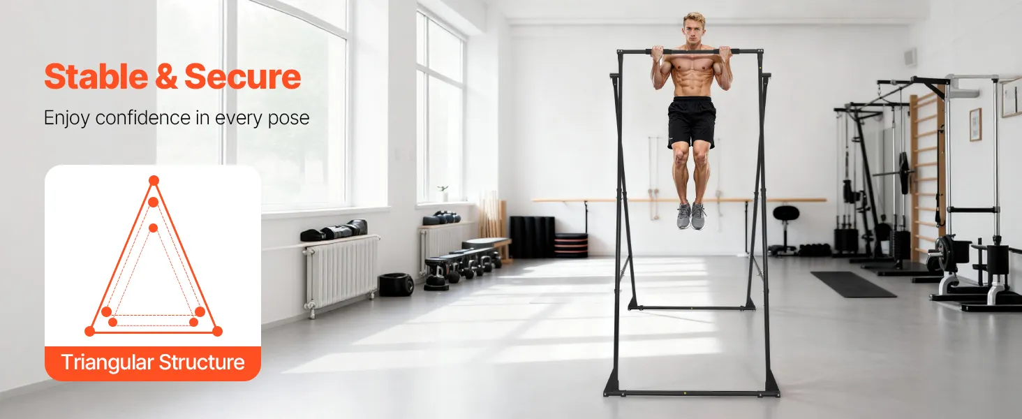 Stable Triangle Structure: Experience a robust yoga trapeze stand with high-quality steel tubing. Salt spray tested for corrosion resistance, its triangular design and non-slip base deliver consistent stability. Ideal for all poses, the frame withstands daily use while offering a reliable platform for stretching and inversions