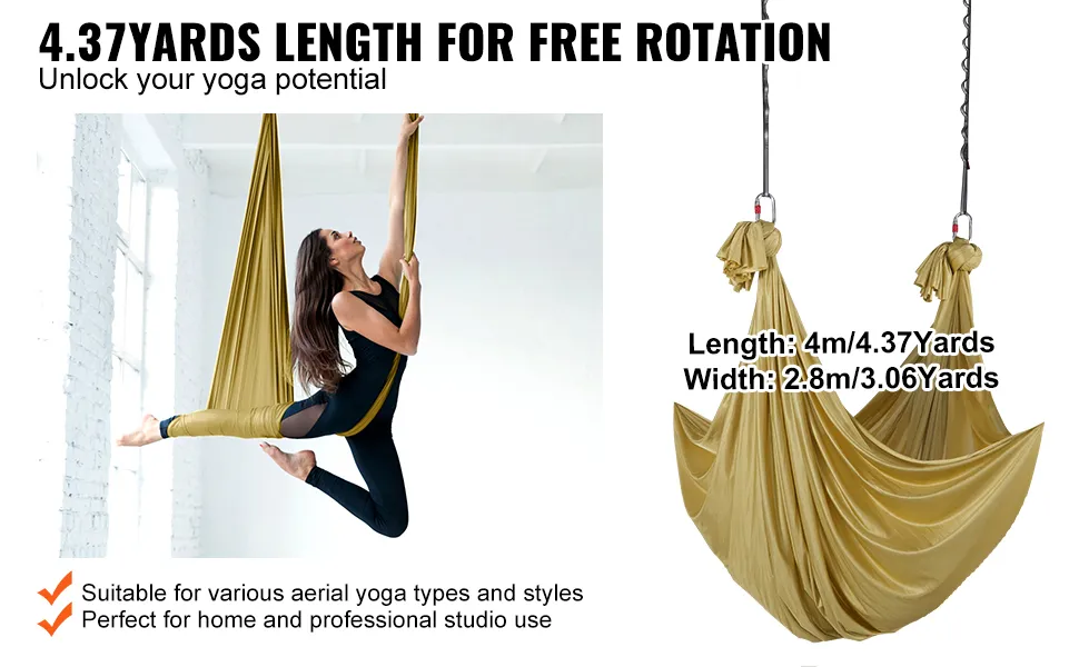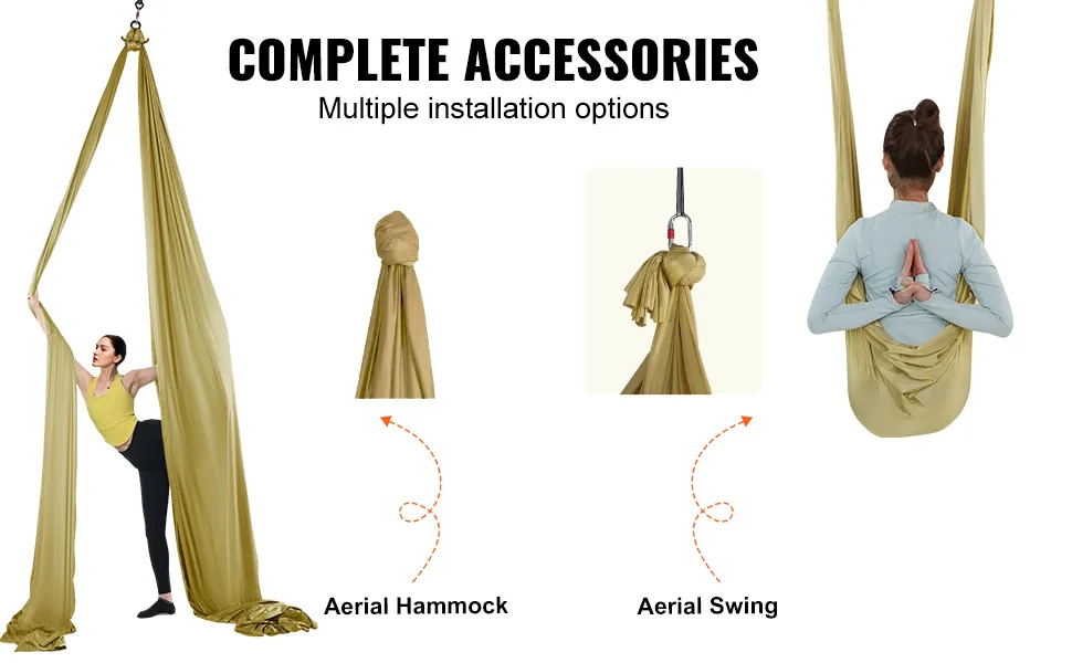 The VEVOR aerial silk has an extended length. It suits any ceiling height. It is ideal for yoga enthusiasts who like aerial silk workouts. You can easily switch between an aerial hammock or a playful aerial swing mode. This flexibility allows you to try different yoga practices with ease. The hammock adapts to your space in your studio, at home, or outdoors. Due to this feature, you can practice yoga in any environment. The ease of use makes it an incredibly convenient addition to your yoga routine.
