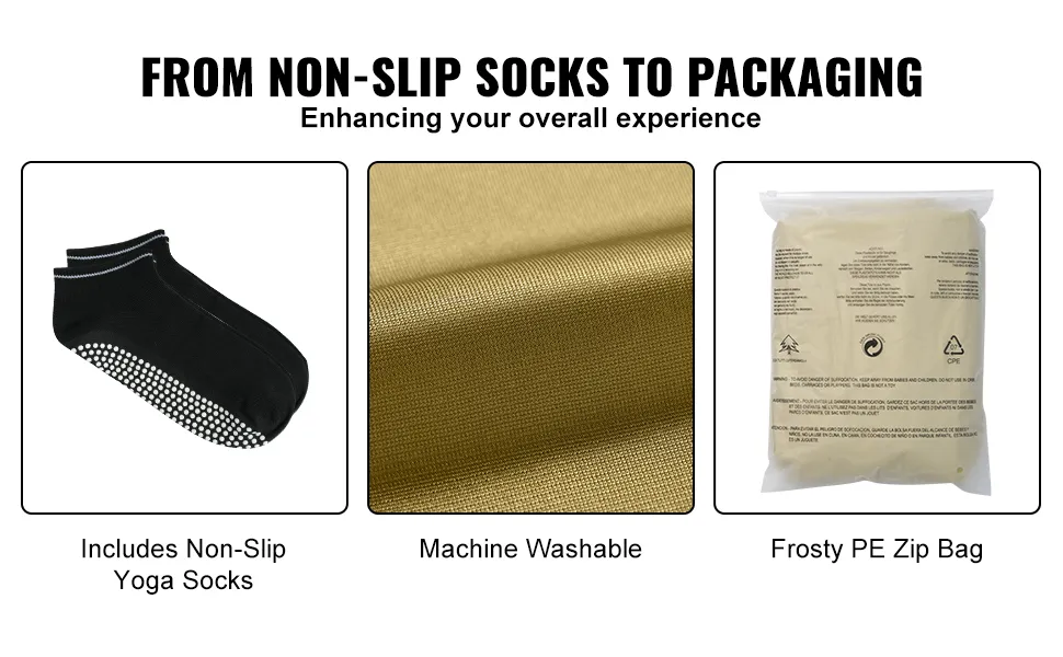 This aesthetic yoga hammock is cleaning and machine washable. The VEVOR aerial yoga hammock is easy to clean and machine washable. It keeps your nylon yoga swing hammock healthy, prolonging its lifespan. The convenient frosted PE zipper bag packaging makes it easy to store or transport. Also, the antigravity yoga equipment comes in various vibrant color options, allowing you to show your style. It adds a touch of personality to your practice. The ease of maintenance ensures that the hammock stays in top condition for longer. Stylish options make it not only functional but also visually appealing.