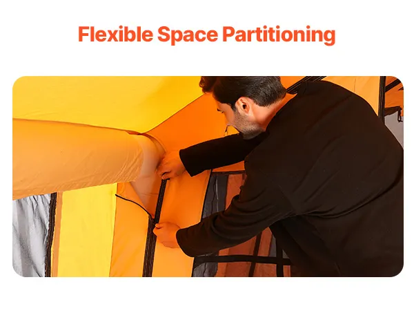 186 pies cuadrados. Amplio interior: Con 186 pies cuadrados (4,8 x 3,6 x 2,2 m), esta tienda de campaña inflable puede alojar cómodamente de 8 a 12 personas. Incluye cortinas extraíbles para crear un espacio de dos habitaciones o una amplia sala de estar. Equipada con un enchufe para la estufa y un puerto de aire acondicionado, es ideal para usarla todo el año.